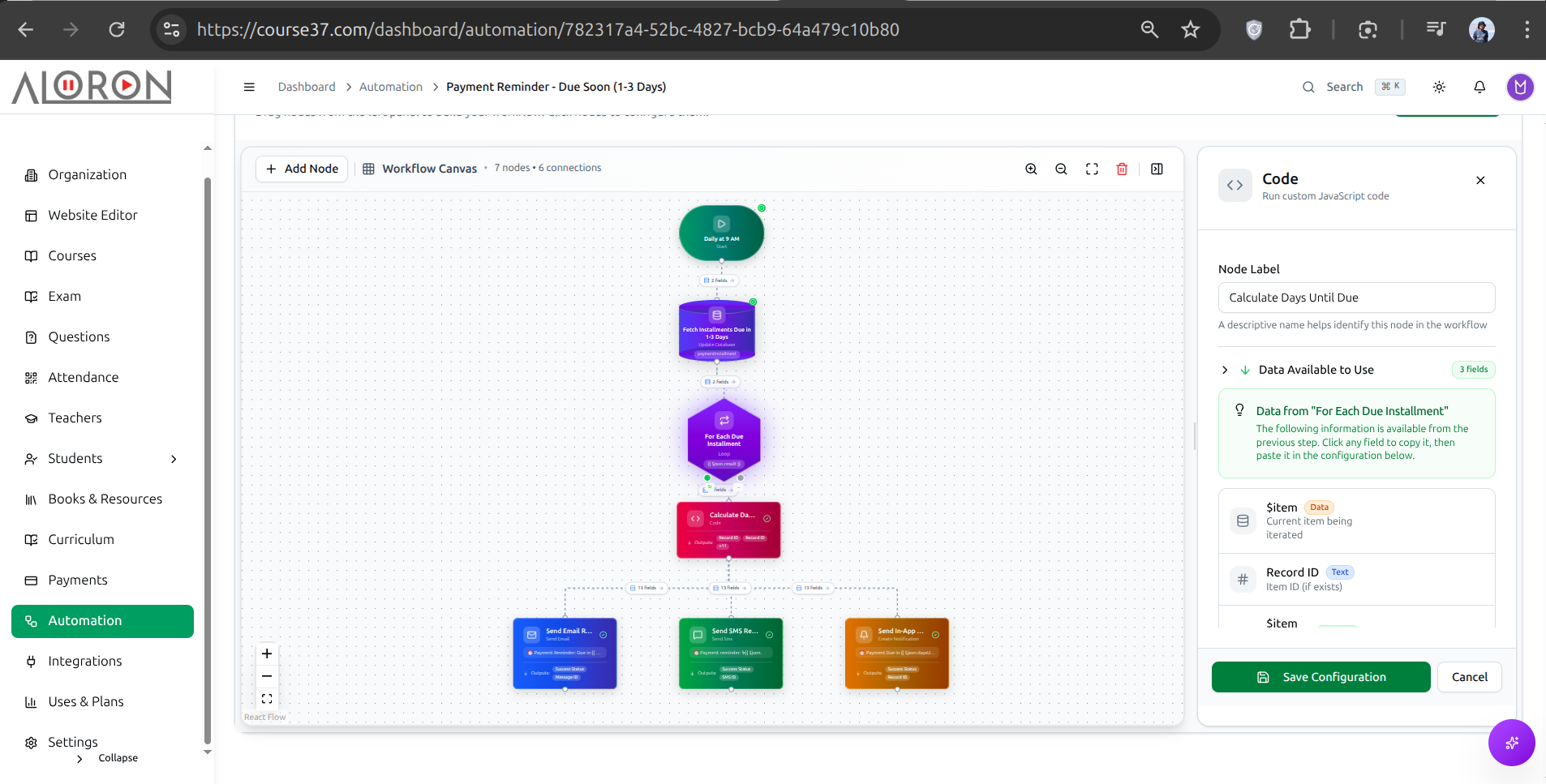 This is where Course37 shines. Move beyond manual reminders with our flowchart-based smart automations. Visually build workflows to: