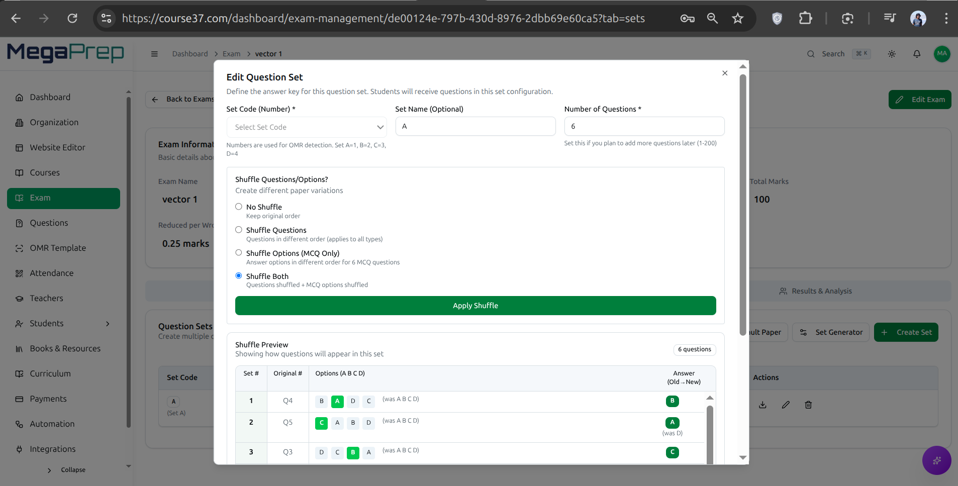 Smart Paper Creation & Automated Sets: Create balanced question papers in minutes. Automatically generate multiple randomized sets (A, B, C, D) with shuffled options to effectively prevent cheating.