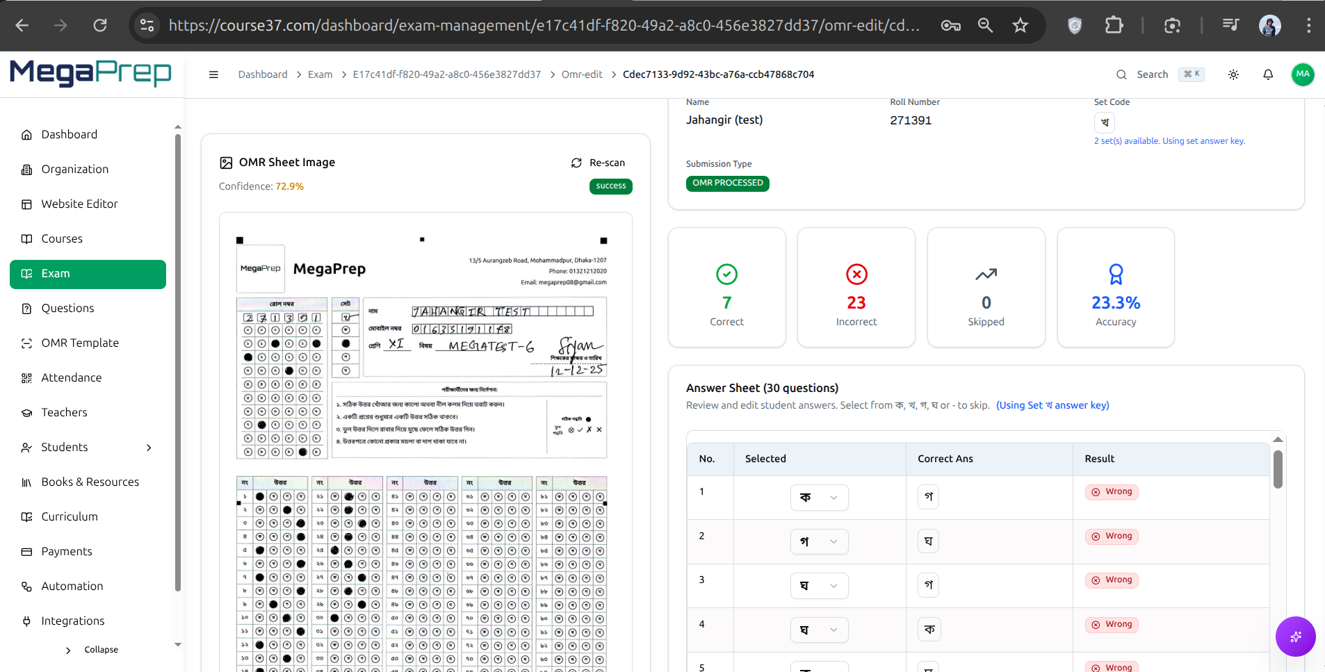 Instant Scanning & Grading: Just scan completed OMRs with any standard scanner. Our advanced Dynamic OCR Algorithm delivers insane grading accuracy across all paper sets, instantly generating merit lists and detailed analytics.